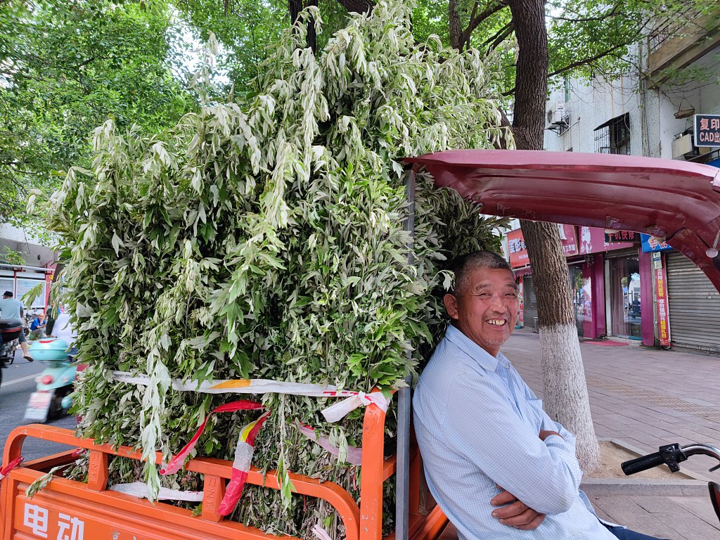 6月14日,端午节,湖北省孝感市云梦县,市民上街购买艾草、菖蒲回家,摆放家中驱虫祈福。 图片作者:陈保忠/视觉中国