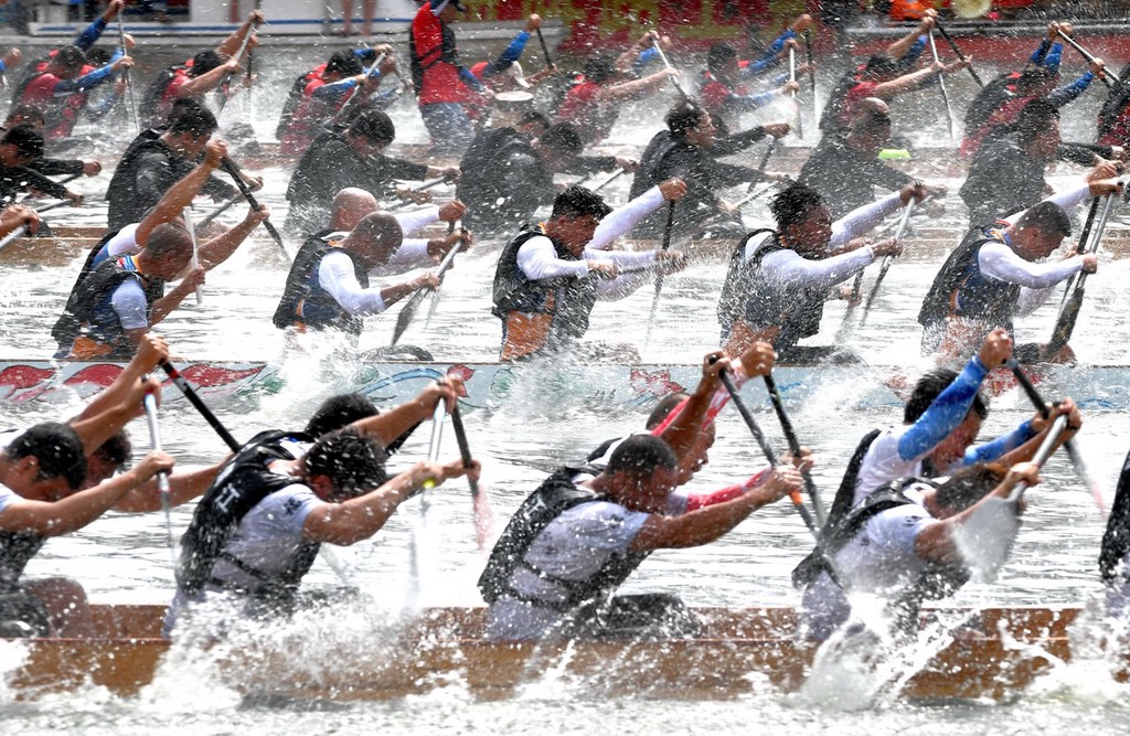 图为6月14日,端午节,2021年福州市传统龙舟邀请赛在福州海峡会展中心浦下河龙舟池举行。20支龙舟队参与角逐,吸引许多人前来观看。 中新社记者 王东明 摄