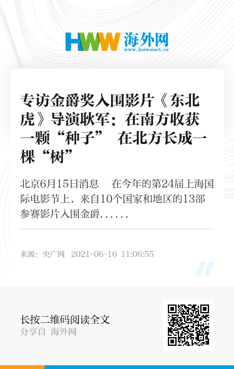 央广网北京6月15日消息 在今年的第24届上海国际电影节上,来自10个国家和地区的13部参赛影片入围金爵奖主竞赛单元,竞争金爵奖。其中,由耿军导演的《东北虎》备受关注,影片海报一经发布,就吊足了影迷们的胃口。