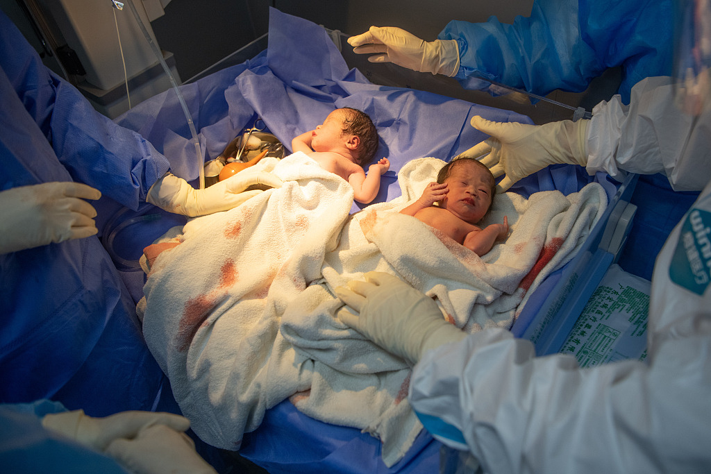 ​6月12日上午,广州市荔湾区妇幼保健院,高危产妇顺利诞下一对双胞胎。图片来源:人民视觉