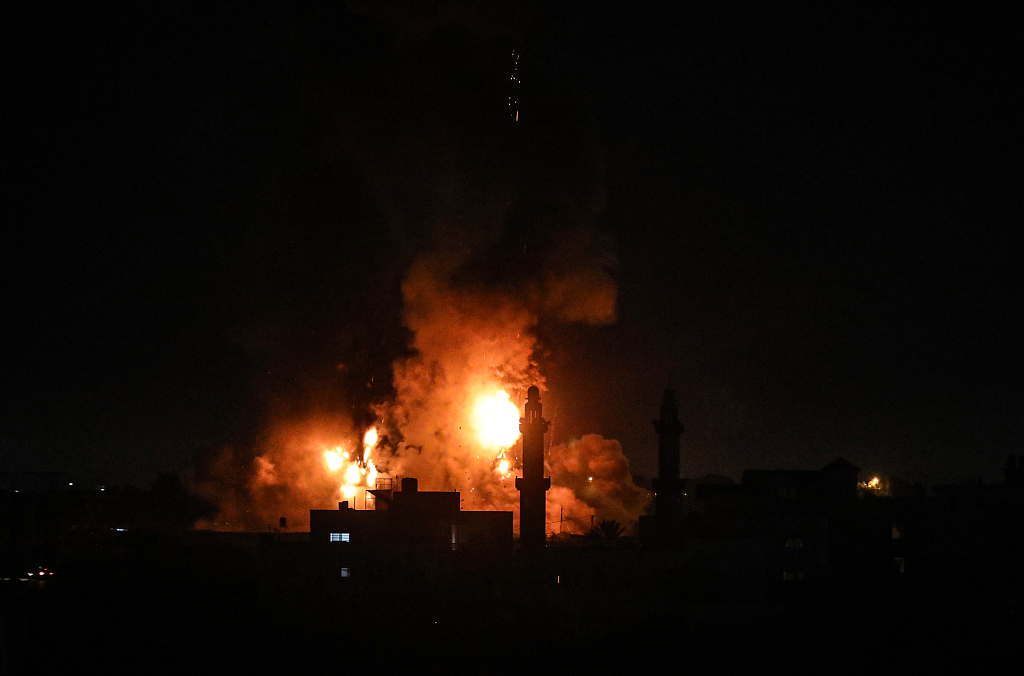 ​当地时间6月16日,据以色列军方消息,以军战机当天凌晨轰炸加沙地带多处目标,这是5月下旬巴以停火后以军首次空袭加沙地带。图片来源:人民视觉