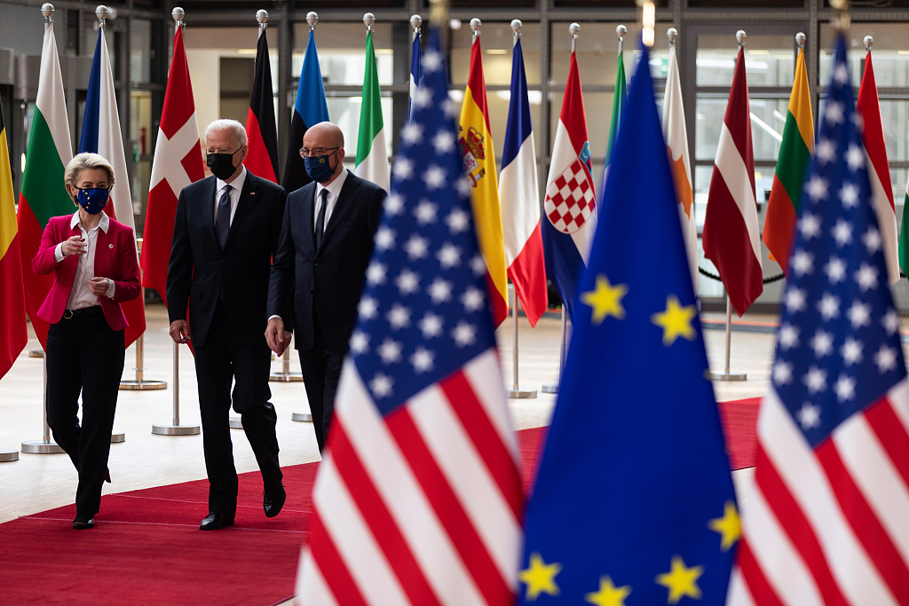 美国和欧盟之间持续17年的航空补贴争端暂告段落,在美国总统拜登出访欧洲之时,双方宣布达成协议,暂停因航空补贴争端互相加征关税。图片来源:人民视觉