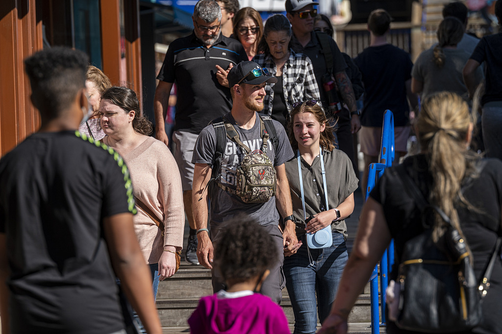 美国新冠肺炎确诊人数当地时间6月15日累计达3348.5万人,死亡人数超过60万人。美国西部的加利福尼亚州从15日开始将取消“居家令”等防疫措施,商店、餐厅等将不再限制人流量,完成疫苗接种者将可以不佩戴口罩。图片来源:人民视觉