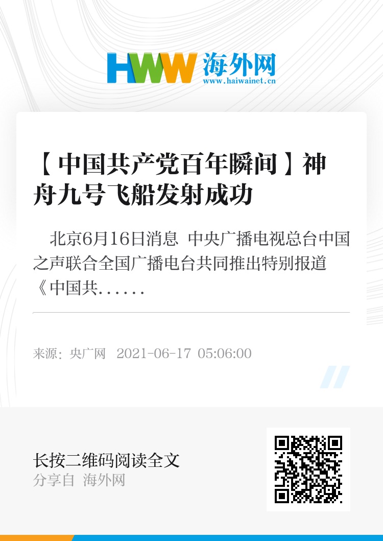 央广网北京6月16日消息 中央广播电视总台中国之声联合全国广播电台共同推出特别报道《中国共产党百年瞬间》。本期推出:神舟九号飞船发射成功。