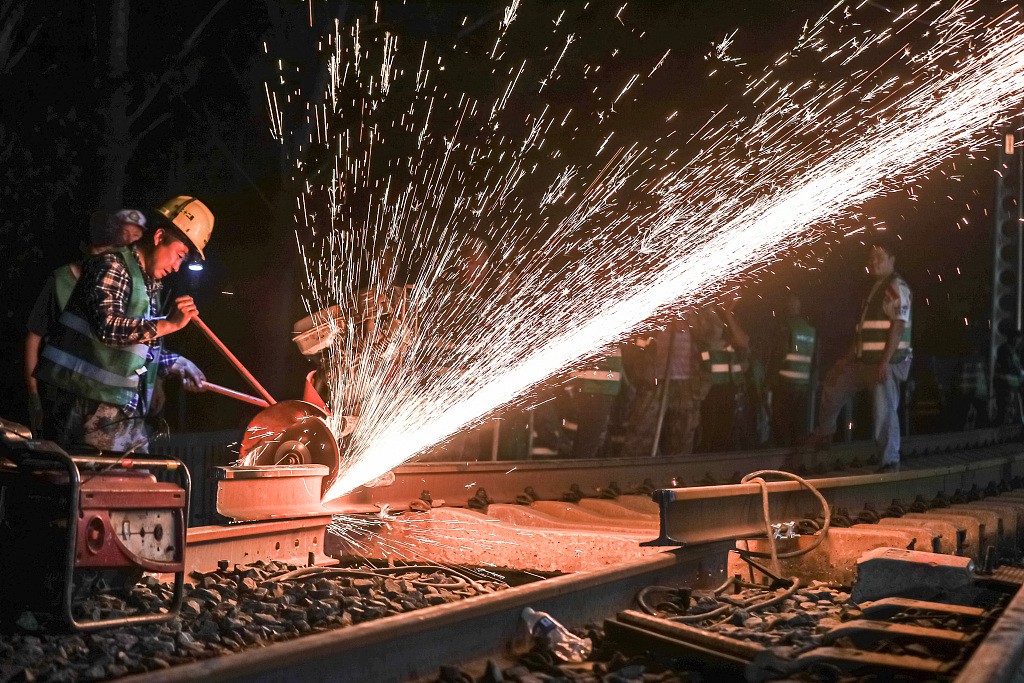 6月17日晚,京雄城际铁路李营站至北京大兴站间单线变双线运行施工正式启动。该项目由中铁十二局施工,参与施工的人员达3000余人。目前,京雄城际在该区间采用单线双方向通行,改造完成后,将实现全线双线运行,列车通行能力进一步提升。图片来源:人民视觉