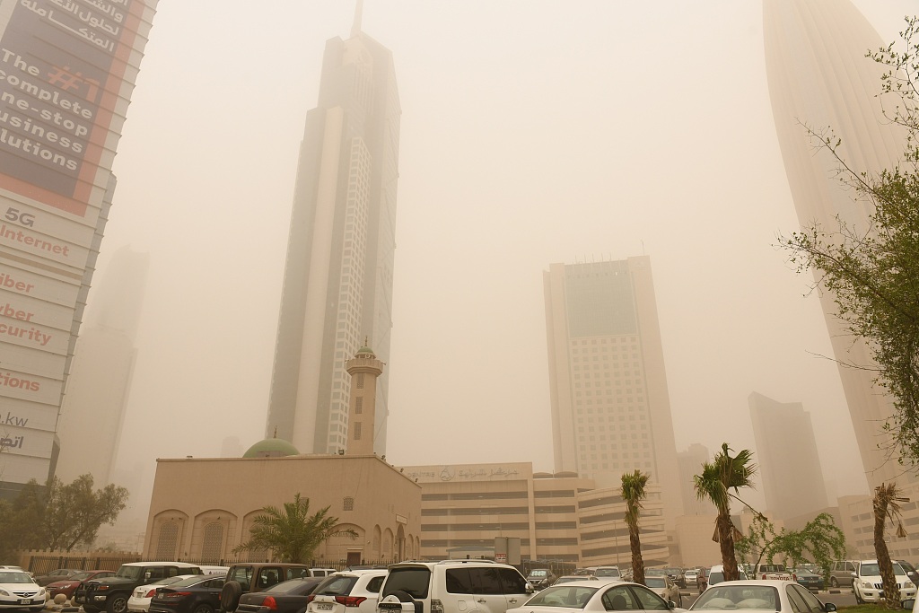 当地时间6月17日,科威特首都科威特城遭遇沙尘暴,一些地区的能见度下降到不到100米。图片来源:人民视觉