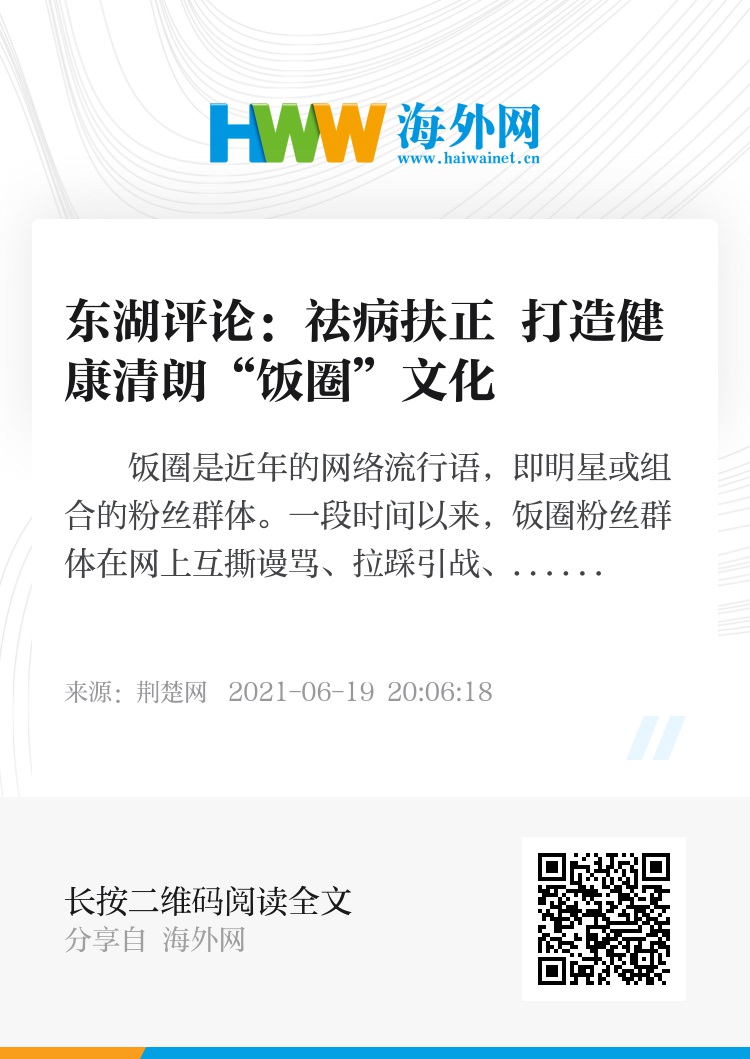 饭圈是近年的网络流行语,即明星或组合的粉丝群体。一段时间以来,饭圈粉丝群体在网上互撕谩骂、拉踩引战、应援打榜、造谣攻击等问题屡见不鲜,危害未成年人身心健康,破坏网络生态环境。祛除病态整治乱象,打造健康清朗饭圈文化,须多方合力,破立并举,同向共行。