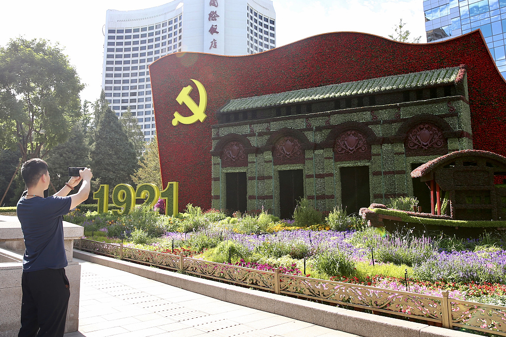 喜迎建党百年 主题花坛亮相北京长安街沿线