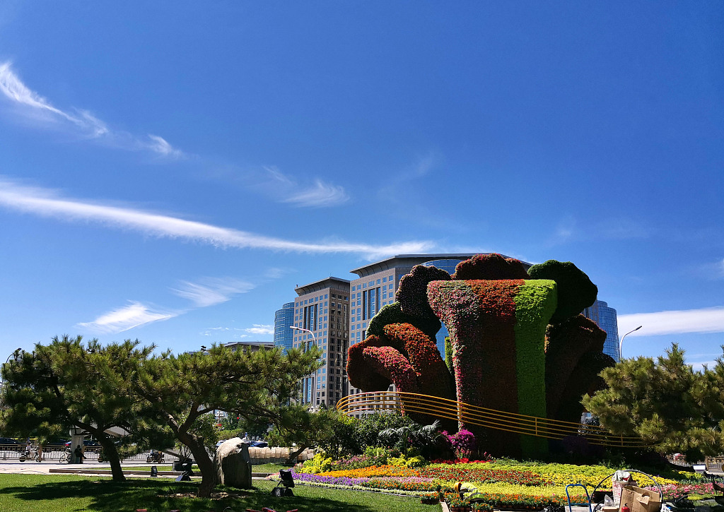 喜迎建党百年 主题花坛亮相北京长安街沿线