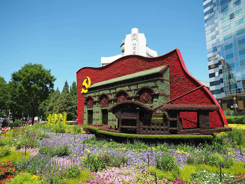 喜迎建党百年 主题花坛亮相北京长安街沿线