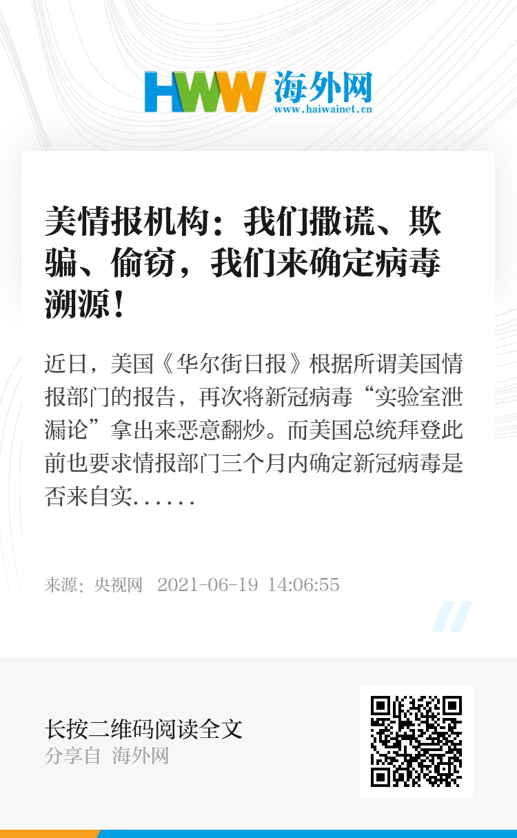 近日,美国《华尔街日报》根据所谓美国情报部门的报告,再次将新冠病毒“实验室泄漏论”拿出来恶意翻炒。