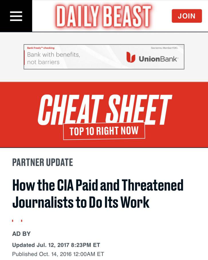 △《每日野兽报》报道,CIA对记者威逼利诱,迫使其为自己工作
