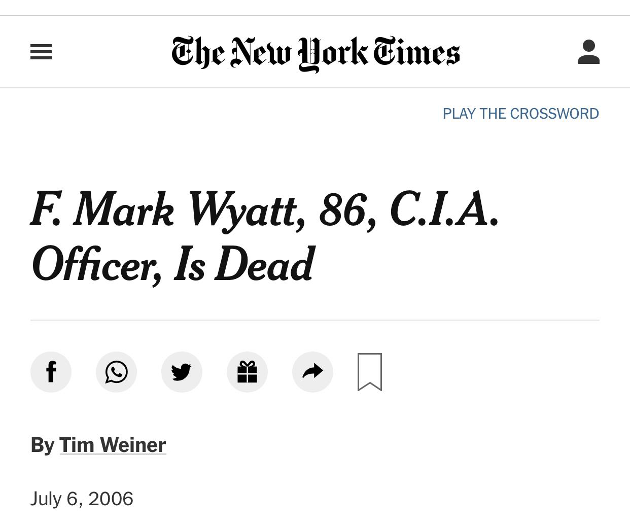 △《纽约时报》2006年4月报道,CIA间谍马克·怀亚特离世,怀亚特曾在1948年参与阻挠意大利共产党赢得大选的任务