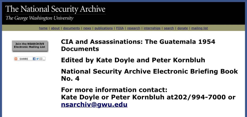 △乔治华盛顿大学档案:《CIA与暗杀:危地马拉1954档案》