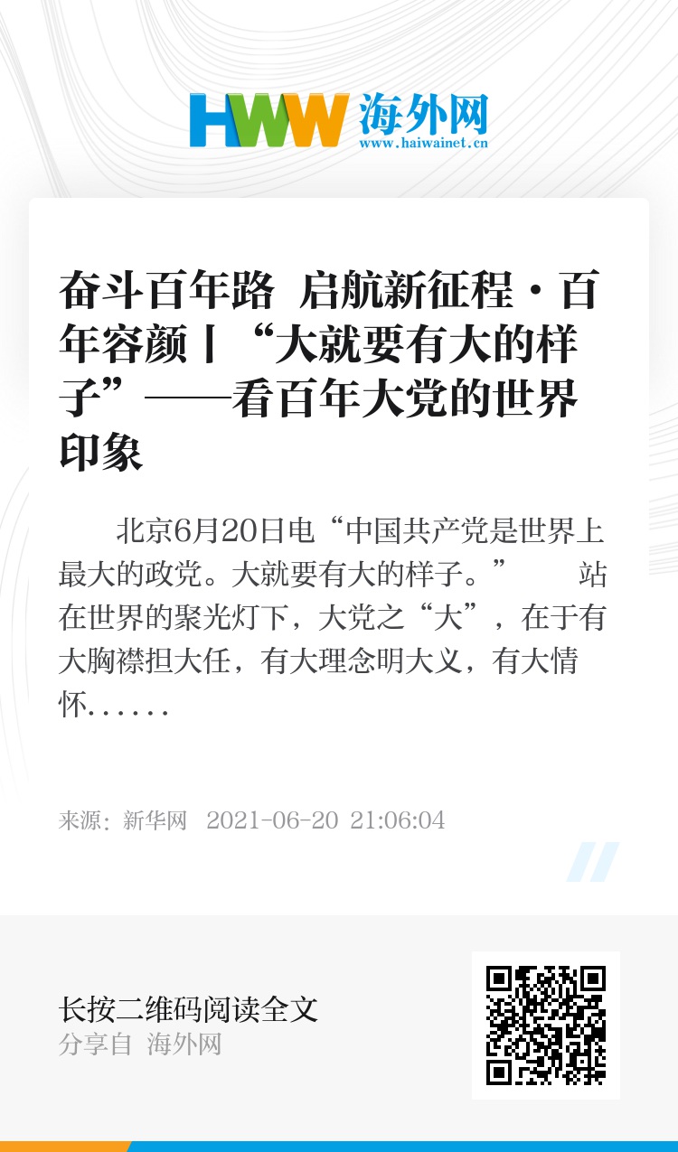 新华社北京6月20日电“中国共产党是世界上最大的政党。大就要有大的样子。”