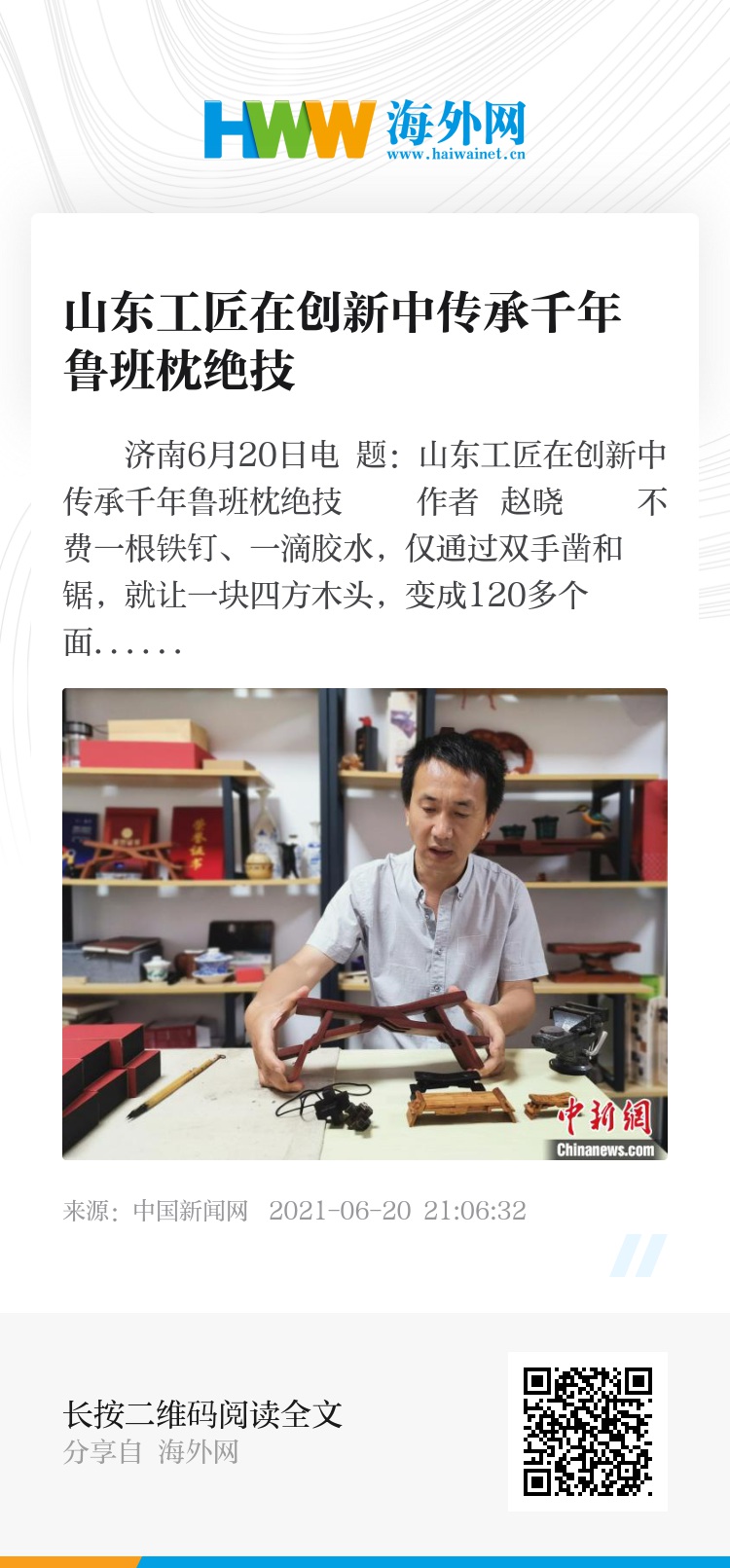 中新网济南6月20日电 题:山东工匠在创新中传承千年鲁班枕绝技