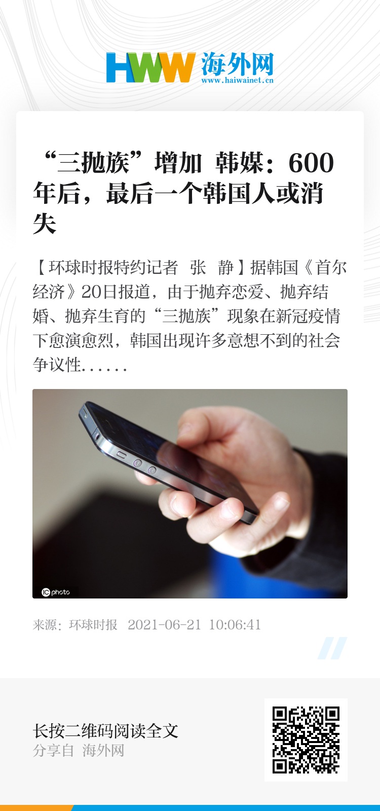 【环球时报特约记者 张 静】据韩国《首尔经济》20日报道,由于抛弃恋爱、抛弃结婚、抛弃生育的“三抛族”现象在新冠疫情下愈演愈烈,韩国出现许多意想不到的社会争议性话题,如“女性是否也应该义务服兵役”等。一些“三抛族”决定及时行乐,成为购买奢侈品的主力军,以享受单身生活。韩国目前维持着60万人规模的现役部队,如果“三抛族”问题持续加剧,再过20年韩国兵源将减少一半。韩国舆论还担心,未来这种观念和低生育率一旦持续下去,韩国或将成为“全球首个消失的国家”。