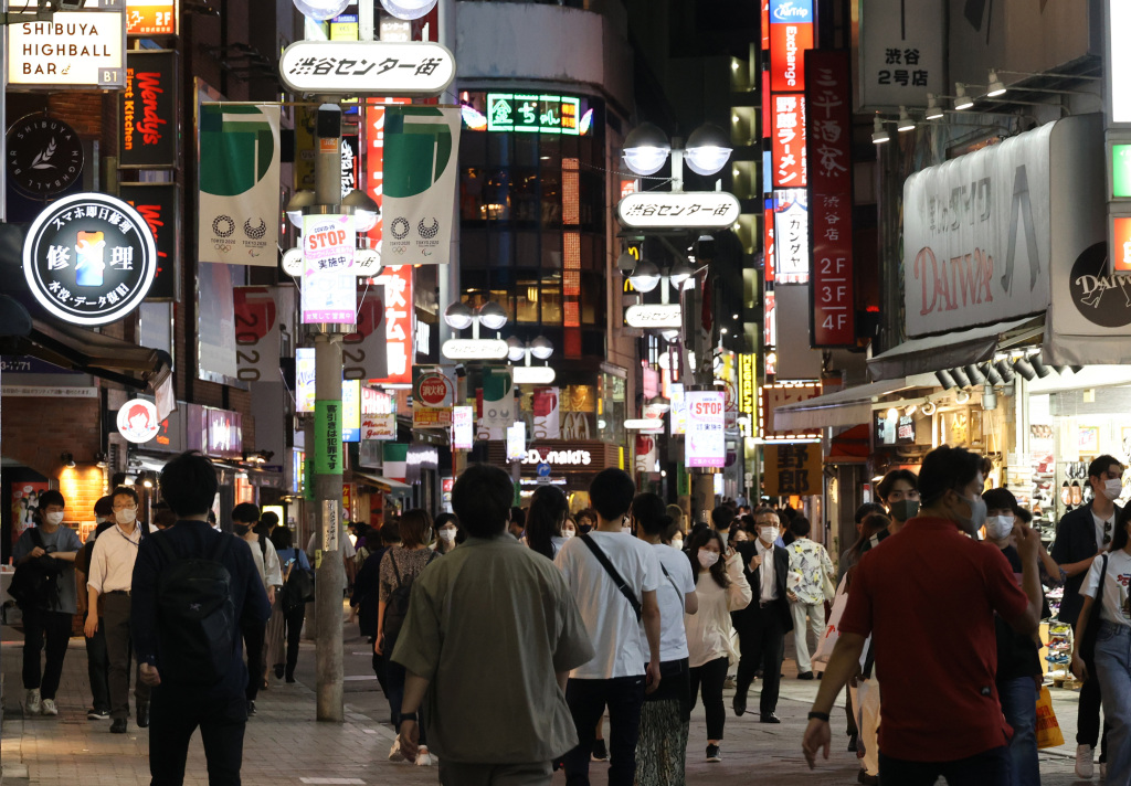当地时间2021年6月21日,日本东京,民众戴着口罩在街头行走。图片来源:澎湃影像