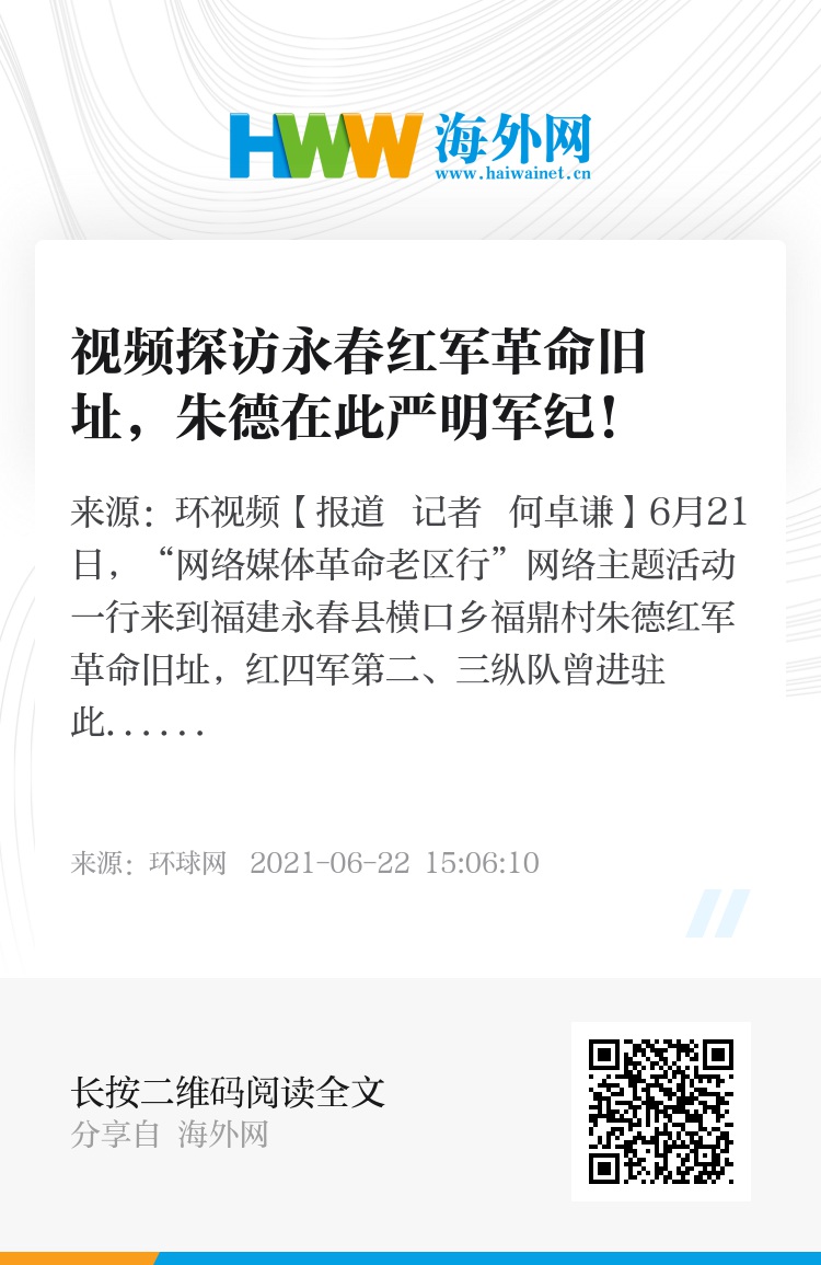 【环球网报道 记者 何卓谦】6月21日,“网络媒体革命老区行”网络主题活动一行来到福建永春县横口乡福鼎村朱德红军革命旧址,红四军第二、三纵队曾进驻此地,并和当地群众谱写下一个个军民鱼水情的感人故事。