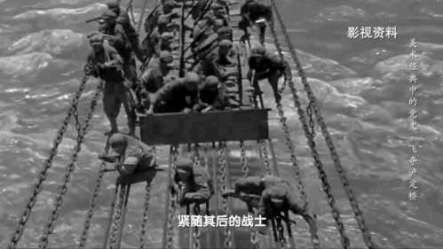 在战斗中,有战士中弹落入江中,但红军勇士们没有畏惧,继续向前攀爬。紧随其后的战士,将木板铺在铁索上,方便后续部队通过。