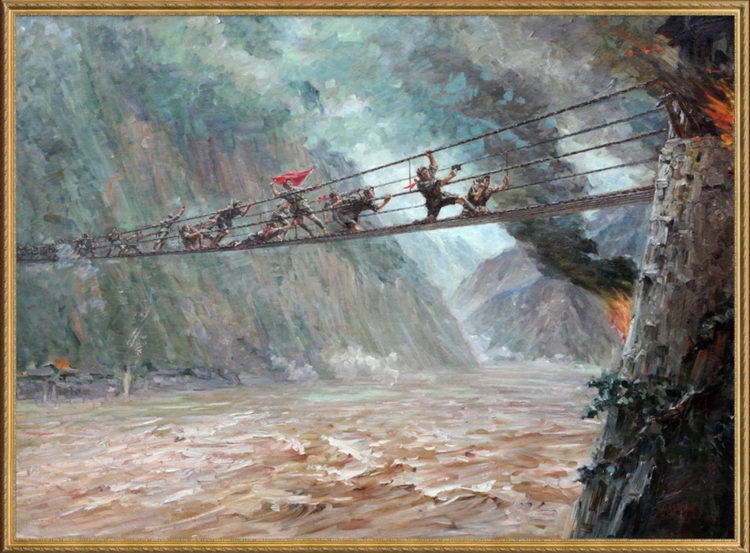 飞夺泸定桥的传奇故事被选入小学课本,被一代代中国人铭记。课本上的这幅画作,就是著名油画家刘国枢在1959年创作的作品《飞夺泸定桥》。