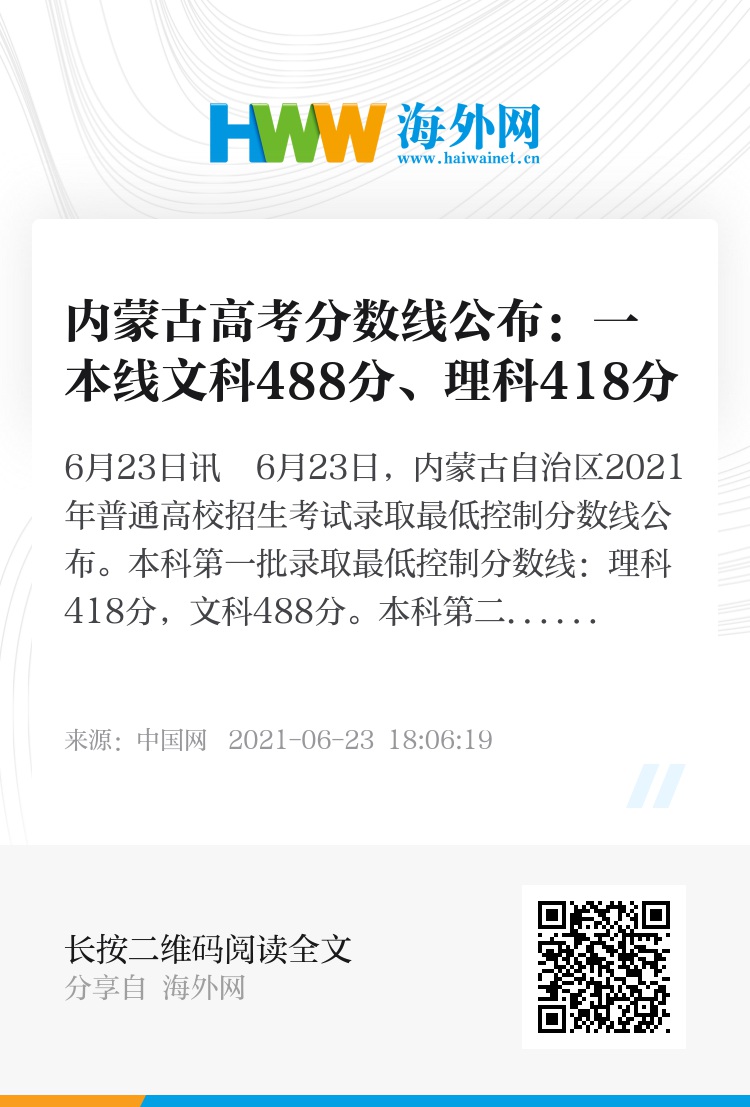 中国网6月23日讯 6月23日,内蒙古自治区2021年普通高校招生考试录取最低控制分数线公布。