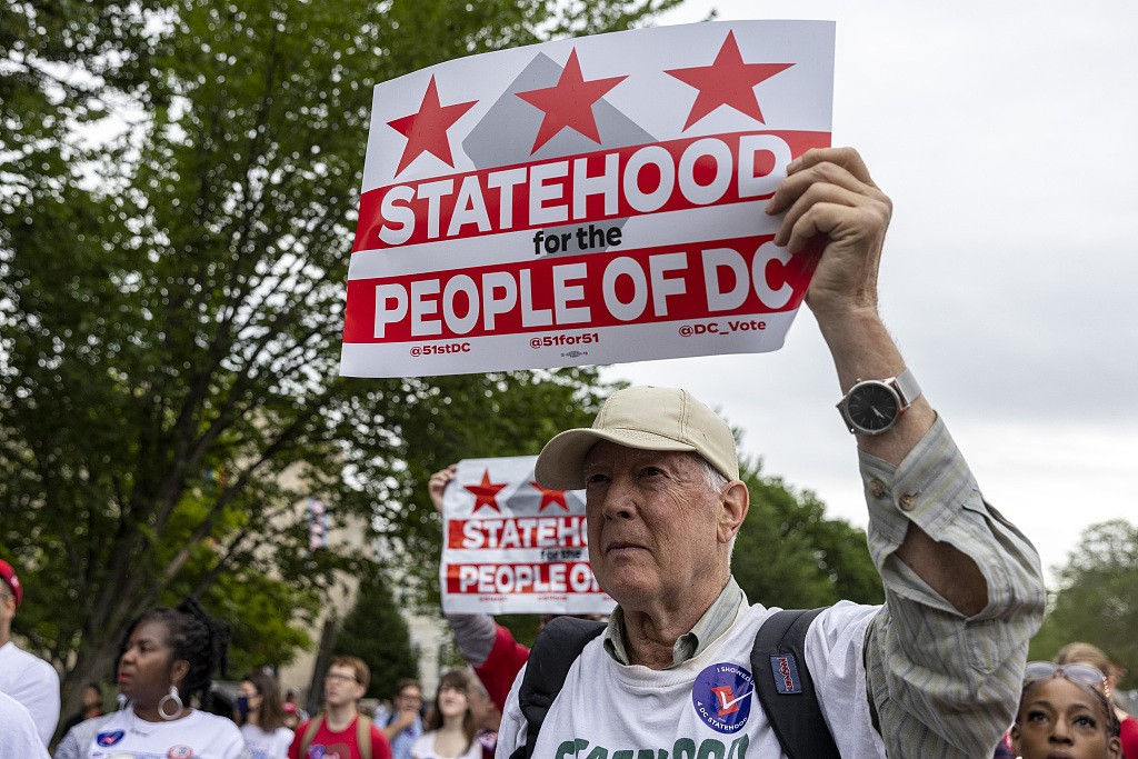 当地时间6月22日,美国华盛顿特区居民举行集会,支持哥伦比亚华盛顿特区成为美国的第51个州。图片来源:人民视觉