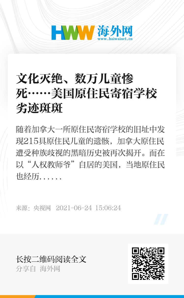 随着加拿大一所原住民寄宿学校的旧址中发现215具原住民儿童的遗骸,加拿大原住民遭受种族歧视的黑暗历史被再次揭开。而在以“人权教师爷”自居的美国,当地原住民也经历过同样黑暗的历史。
