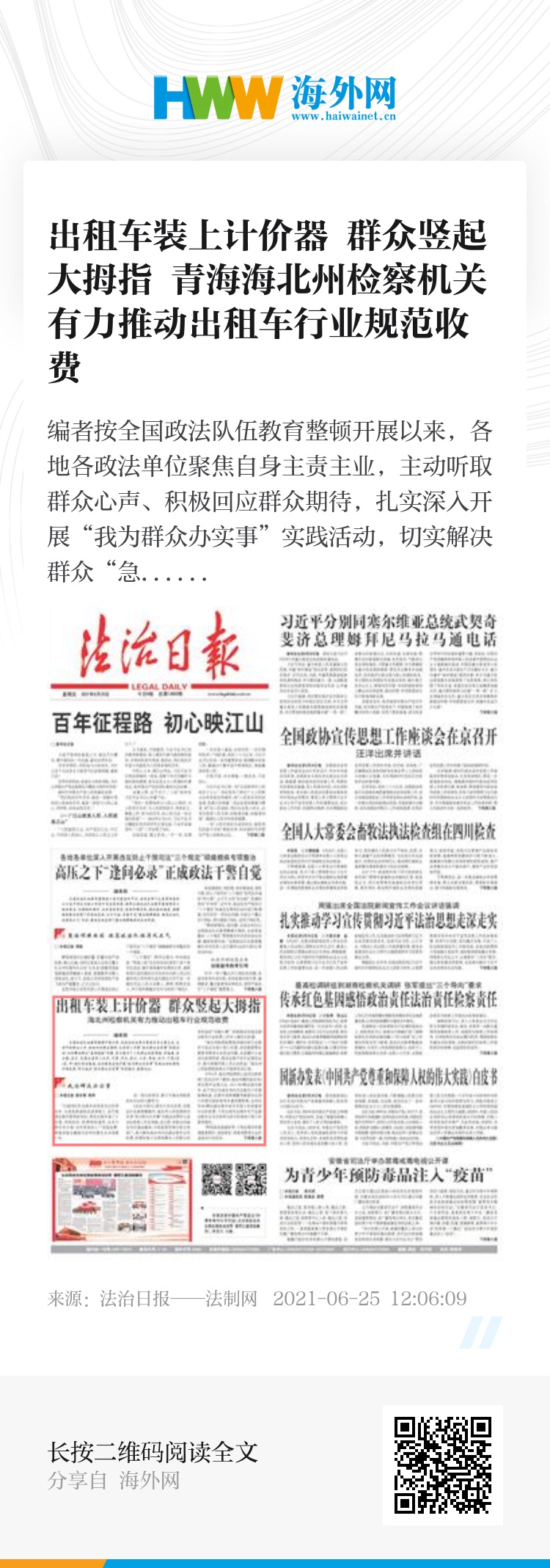 据了解,经海北州检察院与相关部门协商,拟定于今年7月1日前,全州所有巡游出租汽车均依法安装计程计价器规范使用,计价收费。