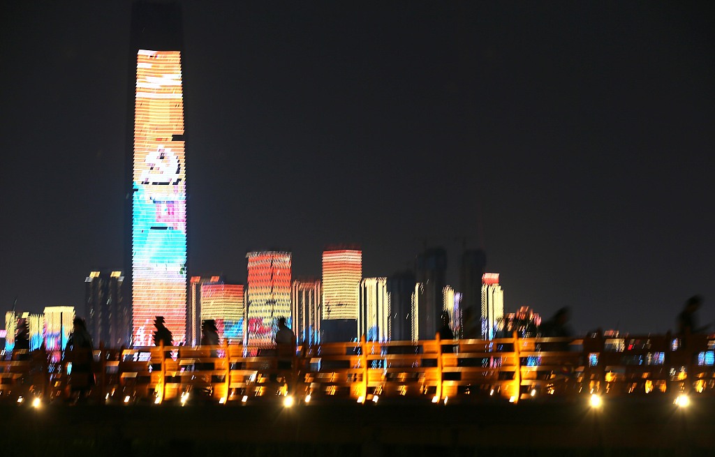 6月24日晚,武汉长江灯光秀以“百年征程 波澜壮阔 百年初心 历久弥坚”为主题,从1921年到2021年追溯中国共产党建党伟业的百年脚步,展示英雄城市、英雄人民敢为人先、追求卓越的精神风貌,庆祝中国共产党成立100周年,吸引了众多武汉市民前来江滩或登上“知音号”游轮观看。图片来源:人民视觉