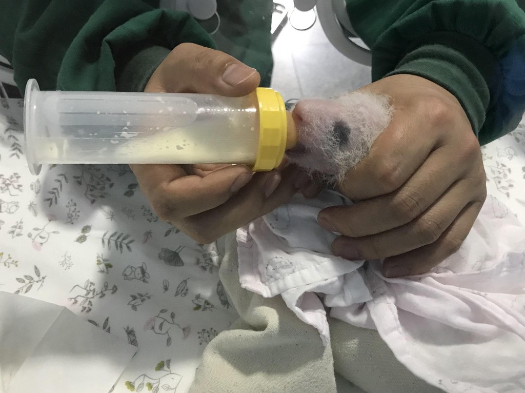 大熊猫幼仔正在喝奶。图片来源:IC photo