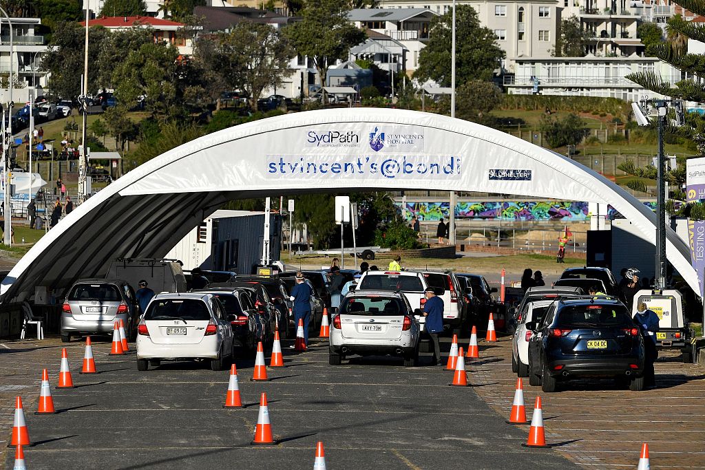 据澳大利亚新闻网当地时间6月25日报道,澳大利亚新南威尔士州新冠确诊人数激增,24日单日新增22例本土确诊病例,悉尼中心地区在内的4个地区将实行封锁措施,计划7月2日午夜结束封锁。图片来源:人民视觉