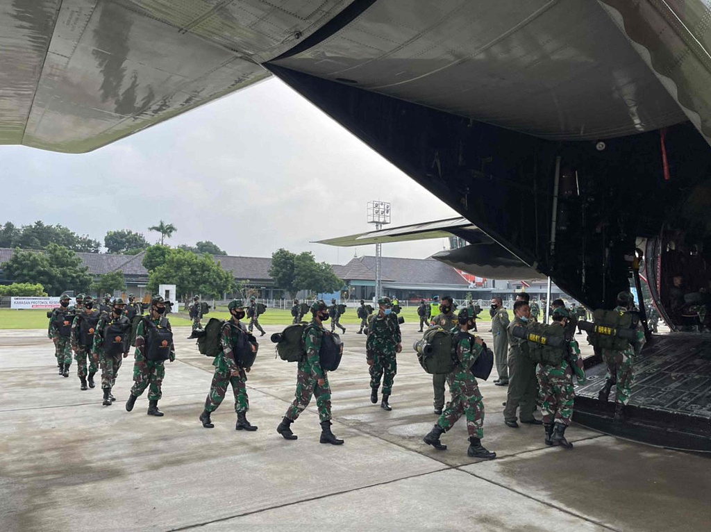 当地时间2021年6月28日,印度西尼亚日惹特区,上百名军方医务人员搭乘飞机前往首都雅加达抗击新冠疫情。图源:人民视觉