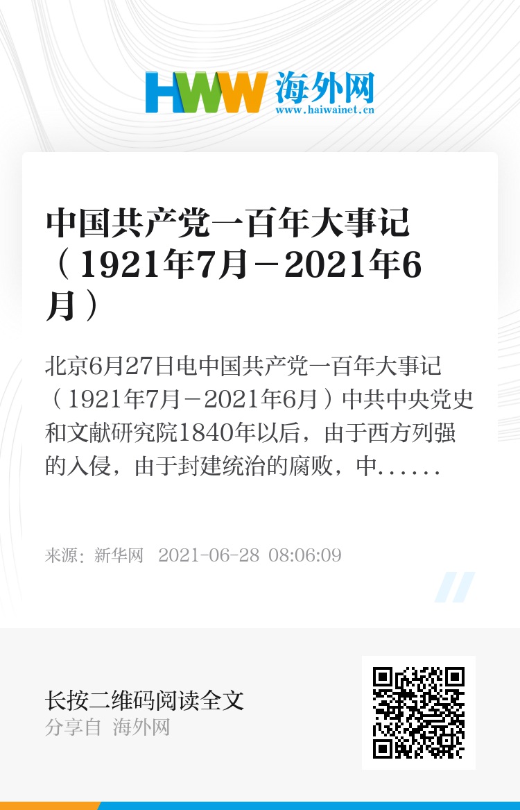 中国共产党一百年大事记(1921年7月-2021年6月)