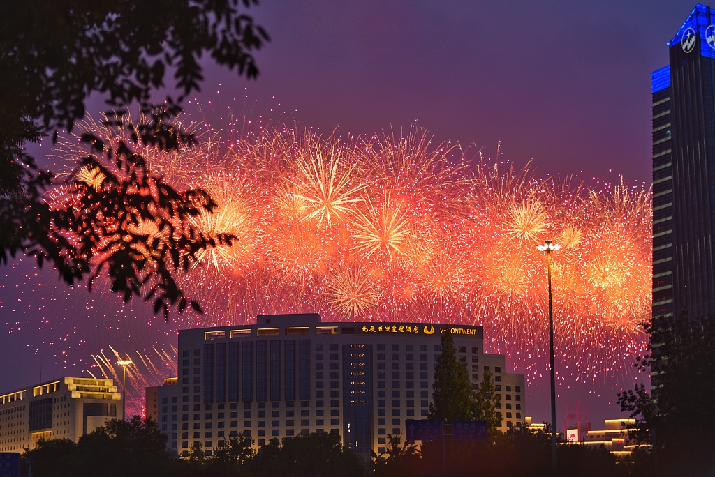 北京:鸟巢上空焰火盛放 喜迎建党100周年