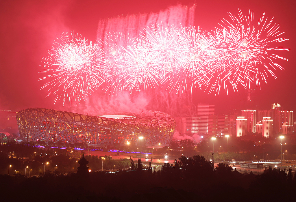 北京:鸟巢上空焰火盛放 喜迎建党100周年