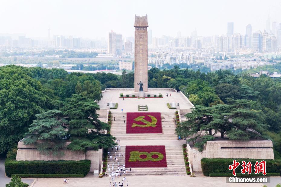 ​6月28日,南京雨花台烈士陵园主题花卉景观。近日,为庆祝中国共产党成立100周年,大型主题花卉景观亮相南京雨花台烈士纪念碑广场。 中新社记者 泱波 摄
