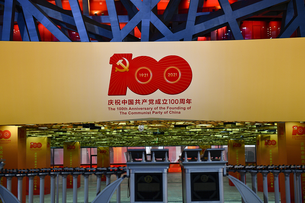 北京国家奥林匹克体育中心上演灯光秀 庆祝建党一百周年