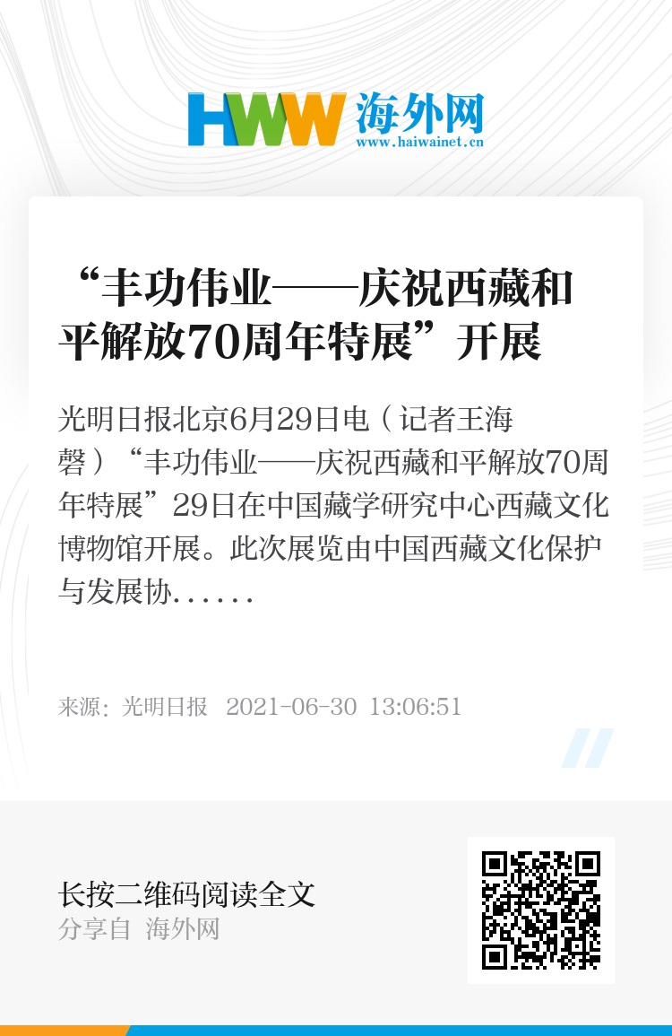光明日报北京6月29日电(记者王海磬)“丰功伟业——庆祝西藏和平解放70周年特展”29日在中国藏学研究中心西藏文化博物馆开展。