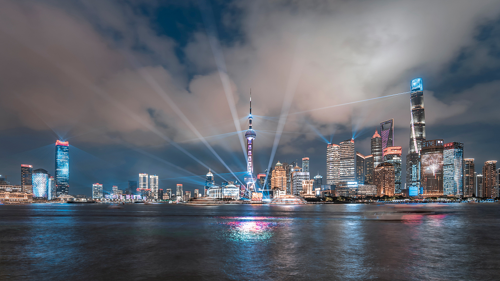 上海:“永远跟党走”主题光影秀点亮浦江两岸