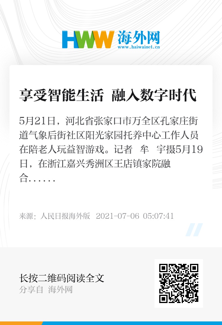 2020年11月,国务院办公厅印发《关于切实解决老年人运用智能技术困难的实施方案》,提出:“要在政策引导和全社会共同努力下,有效解决老年人在运用智能技术方面遇到的困难,让广大老年人更好地适应并融入智慧社会。”
