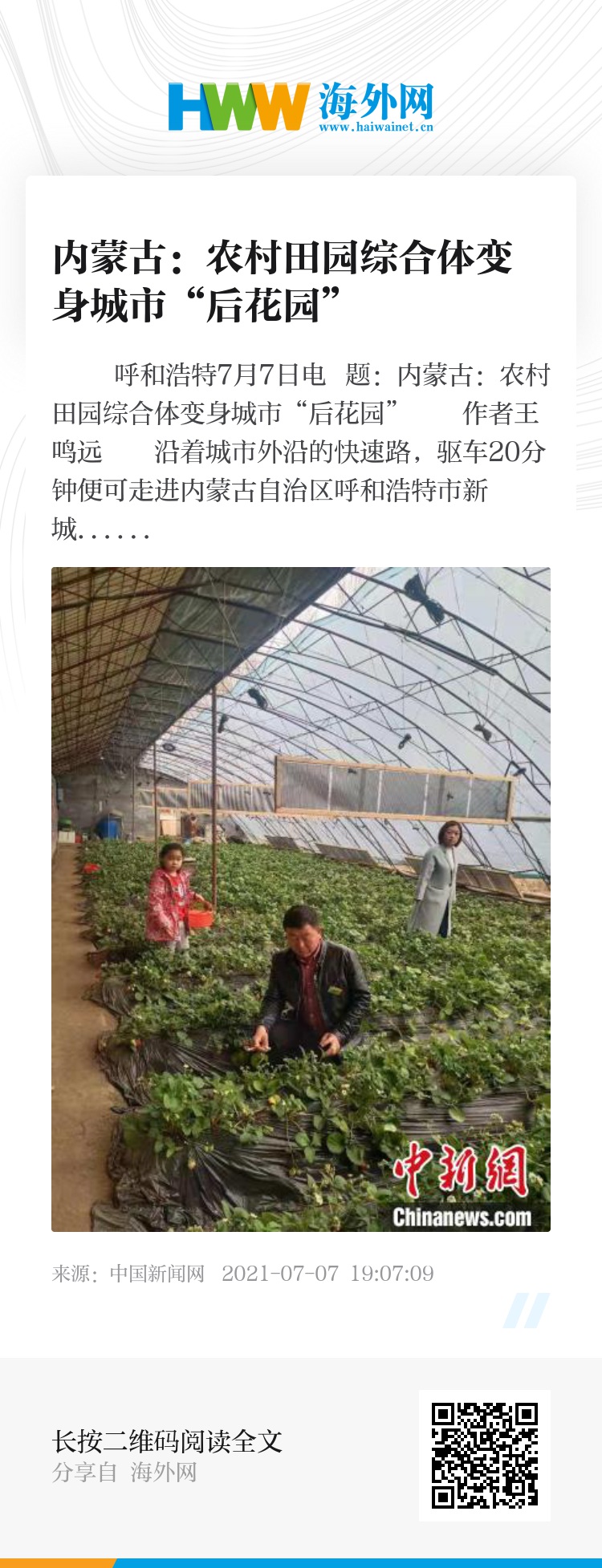 中新网呼和浩特7月7日电 题:内蒙古:农村田园综合体变身城市“后花园”