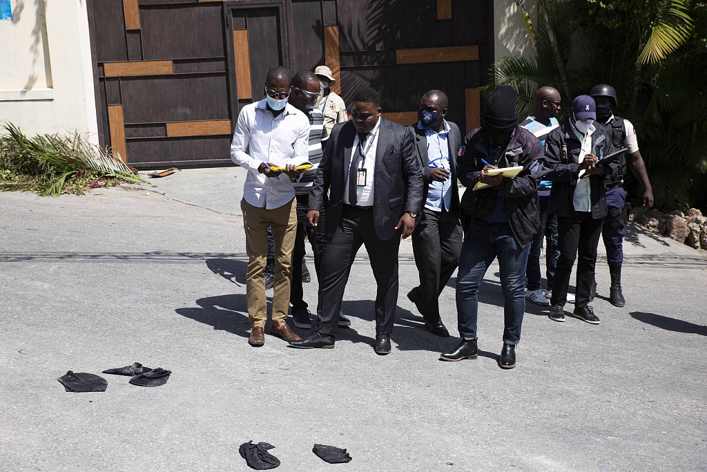 当地时间7月7日,海地通讯部长艾克森特斯表示,涉嫌暗杀该国总统莫伊兹的人已被拘留。海地总统若弗内尔·莫伊兹的私人住所附近被封锁,调查已展开。海地临时总理克洛德·约瑟夫在7日早些时候的一份声明中说,一群身份不明的人深夜袭击了莫伊兹的私人住所,并开枪致其身亡。图片来源:人民视觉