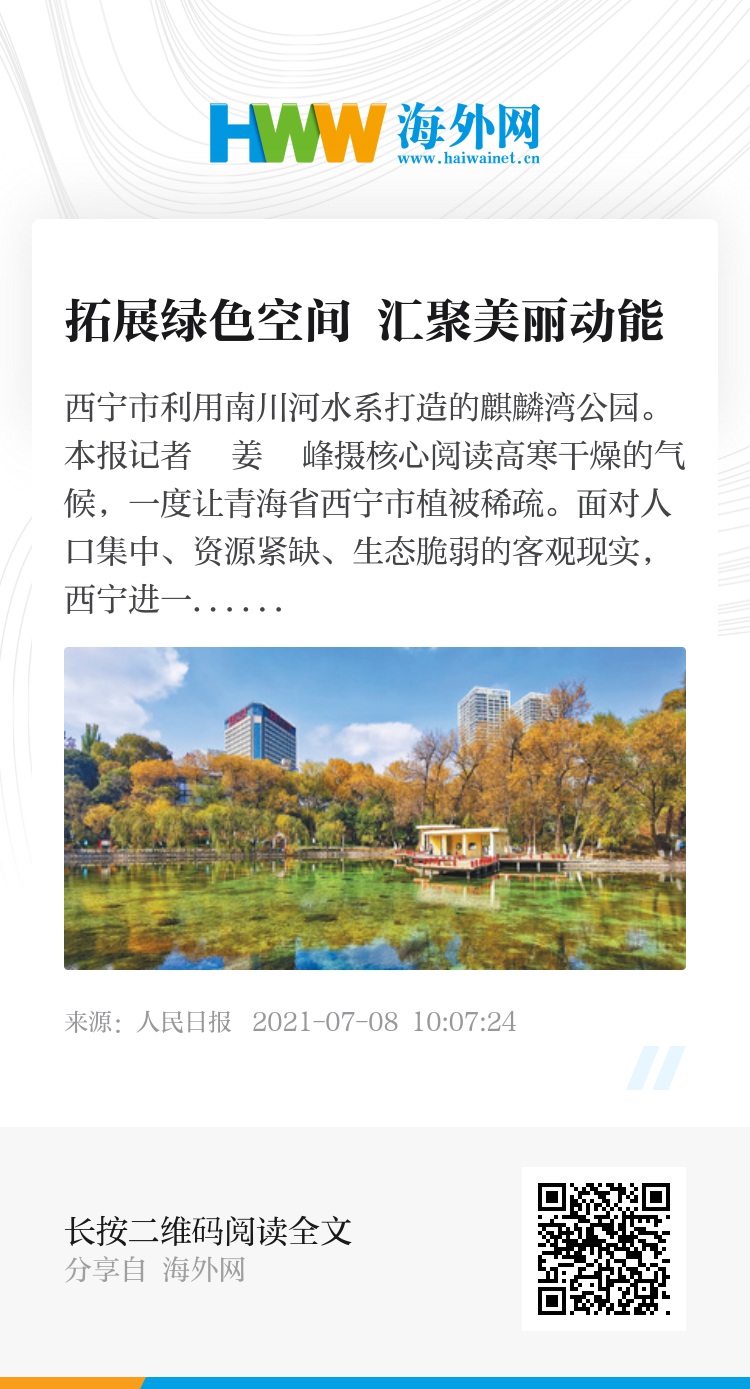 高寒干燥的气候,一度让青海省西宁市植被稀疏。面对人口集中、资源紧缺、生态脆弱的客观现实,西宁进一步统筹生态保护和高质量发展,不断拓展绿色空间,因地制宜打造城市生态综合体。