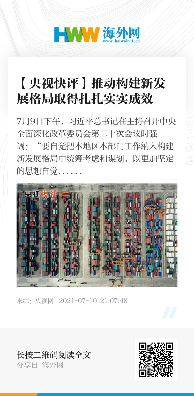 7月9日下午,习近平总书记在主持召开中央全面深化改革委员会第二十次会议时强调:“要自觉把本地区本部门工作纳入构建新发展格局中统筹考虑和谋划,以更加坚定的思想自觉、精准务实的举措、真抓实干的劲头,推动构建新发展格局取得扎扎实实成效。”