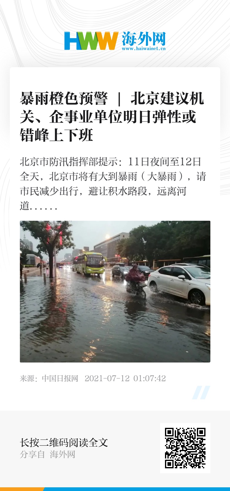 建议北京市不涉及城市运行的机关、企(事)业单位12日可以采取弹性上班方式或错峰上下班,确保安全。