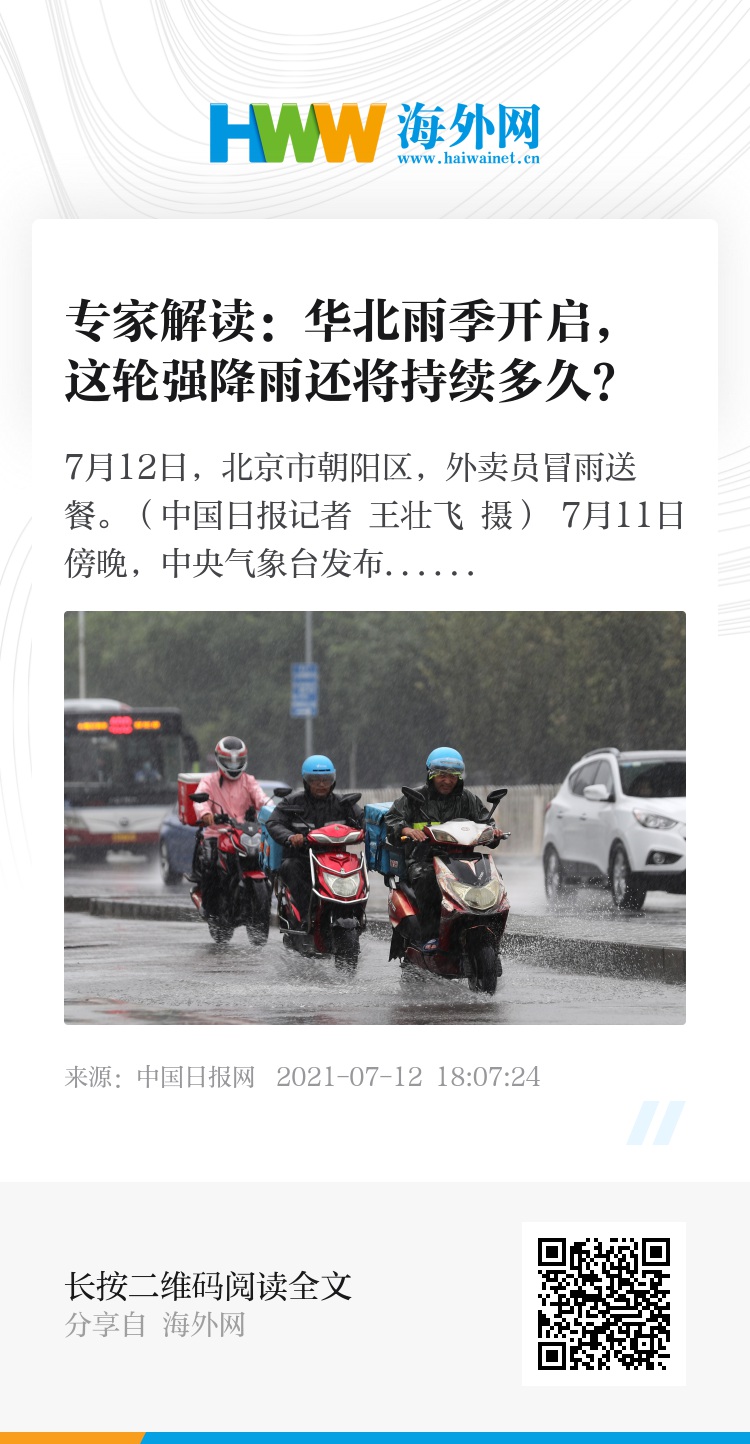 专家:根据中央气象台的监测和分析,7月11日开始的这轮降水过程可以算作是今年华北雨季的开始,较常年平均开始时间(7月18日)稍微偏早一些。不过,往年出现在这个阶段的强降水过程也并不少见。