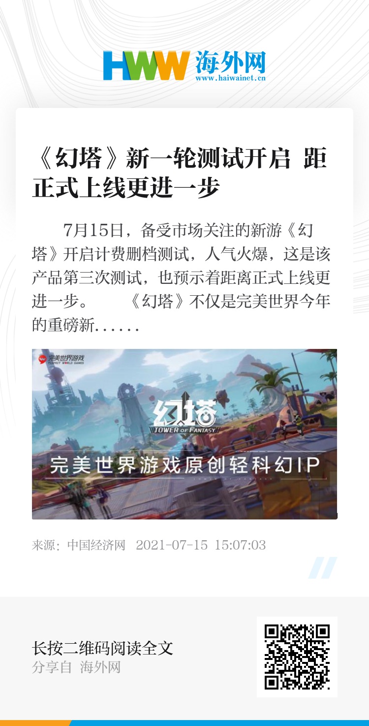 7月15日,备受市场关注的新游《幻塔》开启计费删档测试,人气火爆,这是该产品第三次测试,也预示着距离正式上线更进一步。