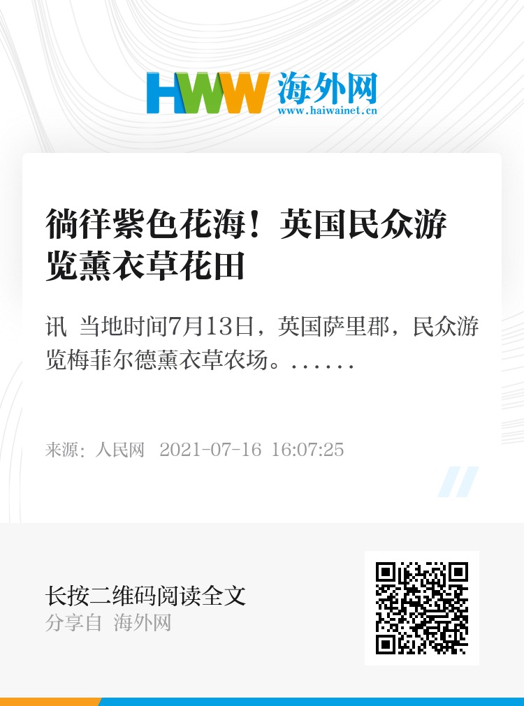 人民网讯 当地时间7月13日,英国萨里郡,民众游览梅菲尔德薰衣草农场。