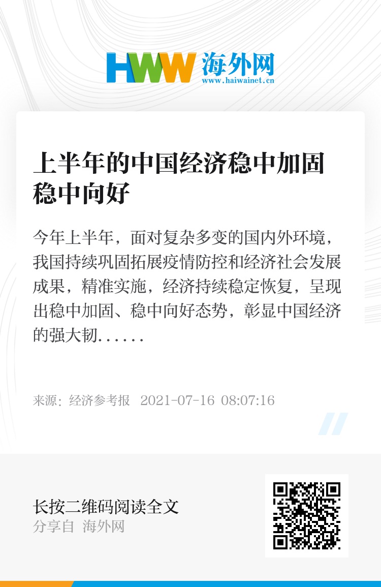 今年上半年,面对复杂多变的国内外环境,我国持续巩固拓展疫情防控和经济社会发展成果,精准实施,经济持续稳定恢复,呈现出稳中加固、稳中向好态势,彰显中国经济的强大韧性和旺盛活力。